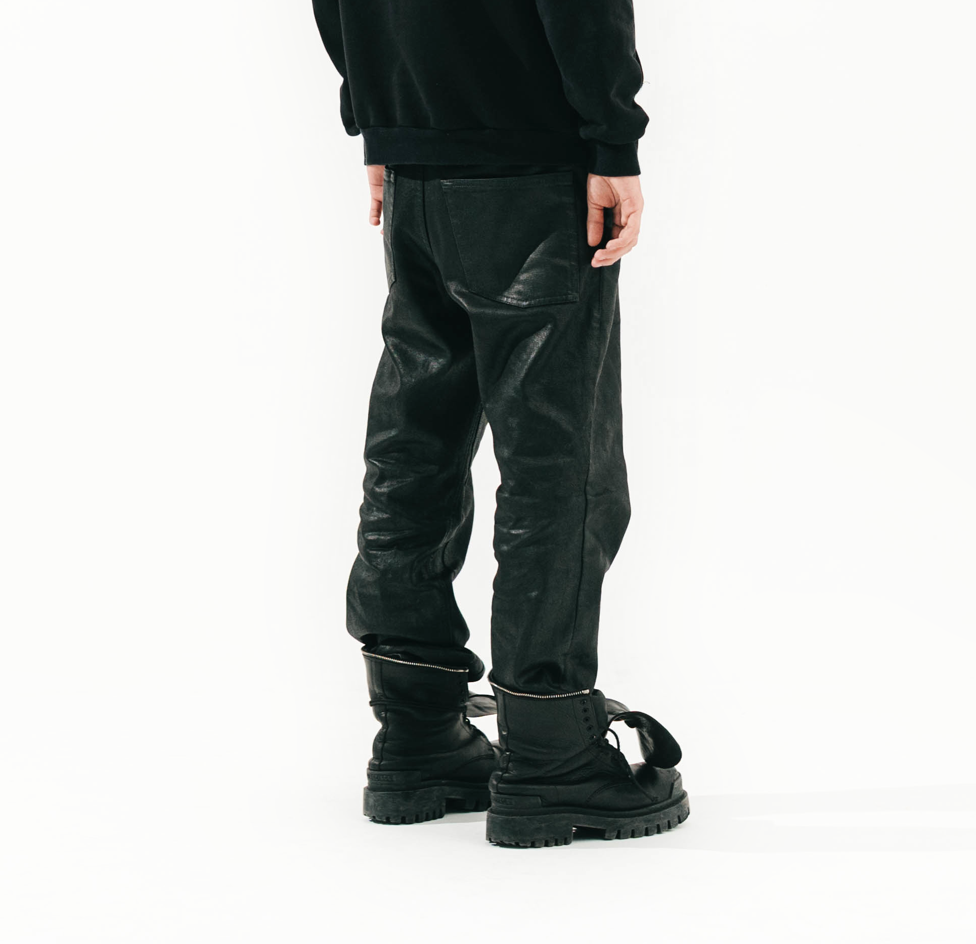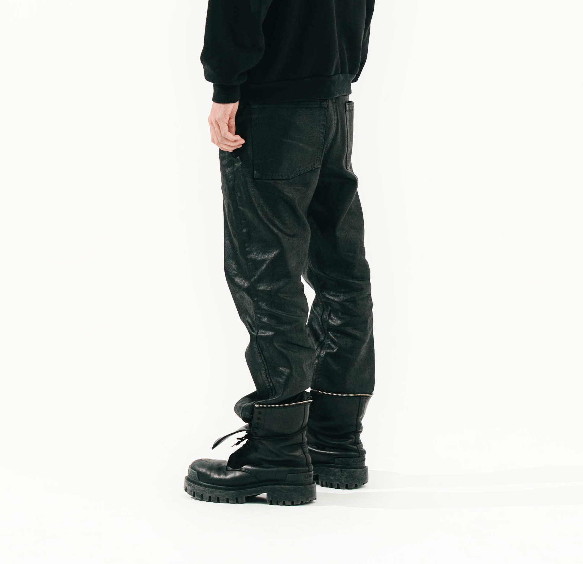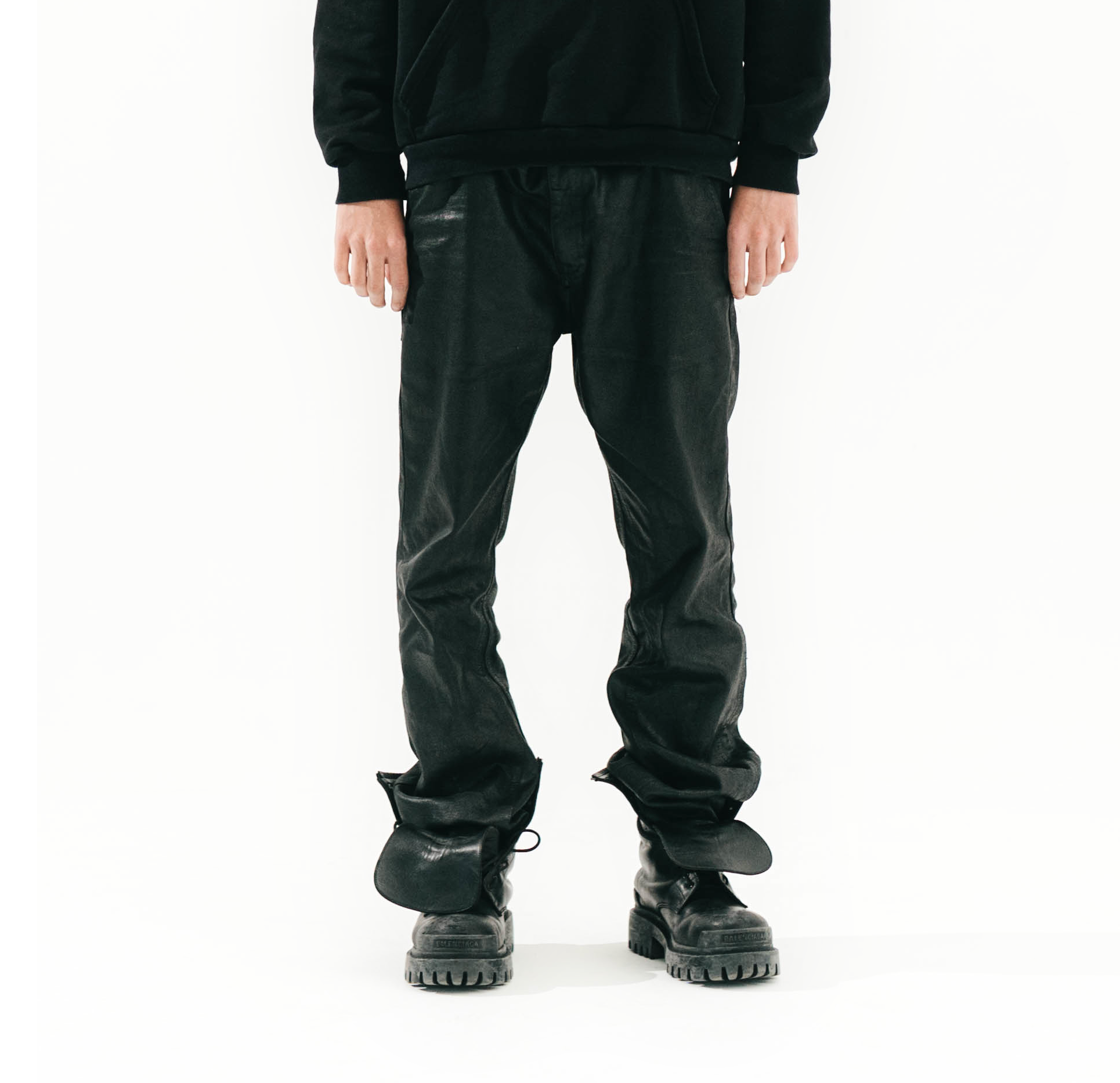 FLARED, WAXED DENIM