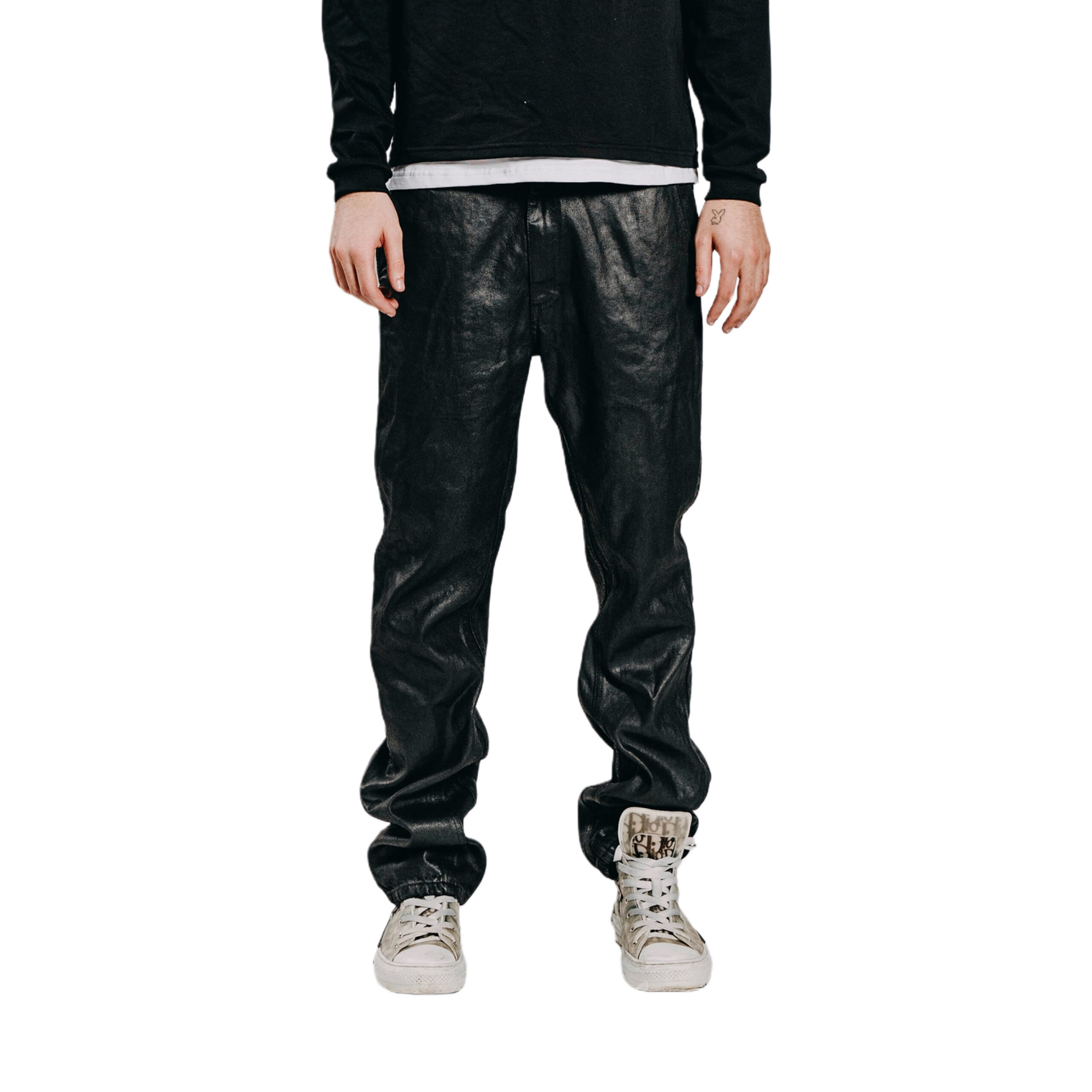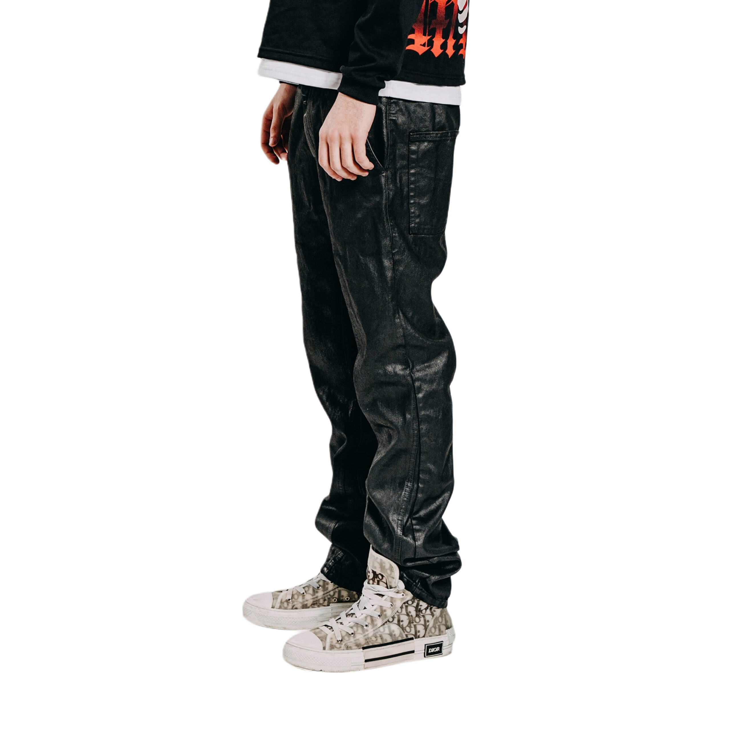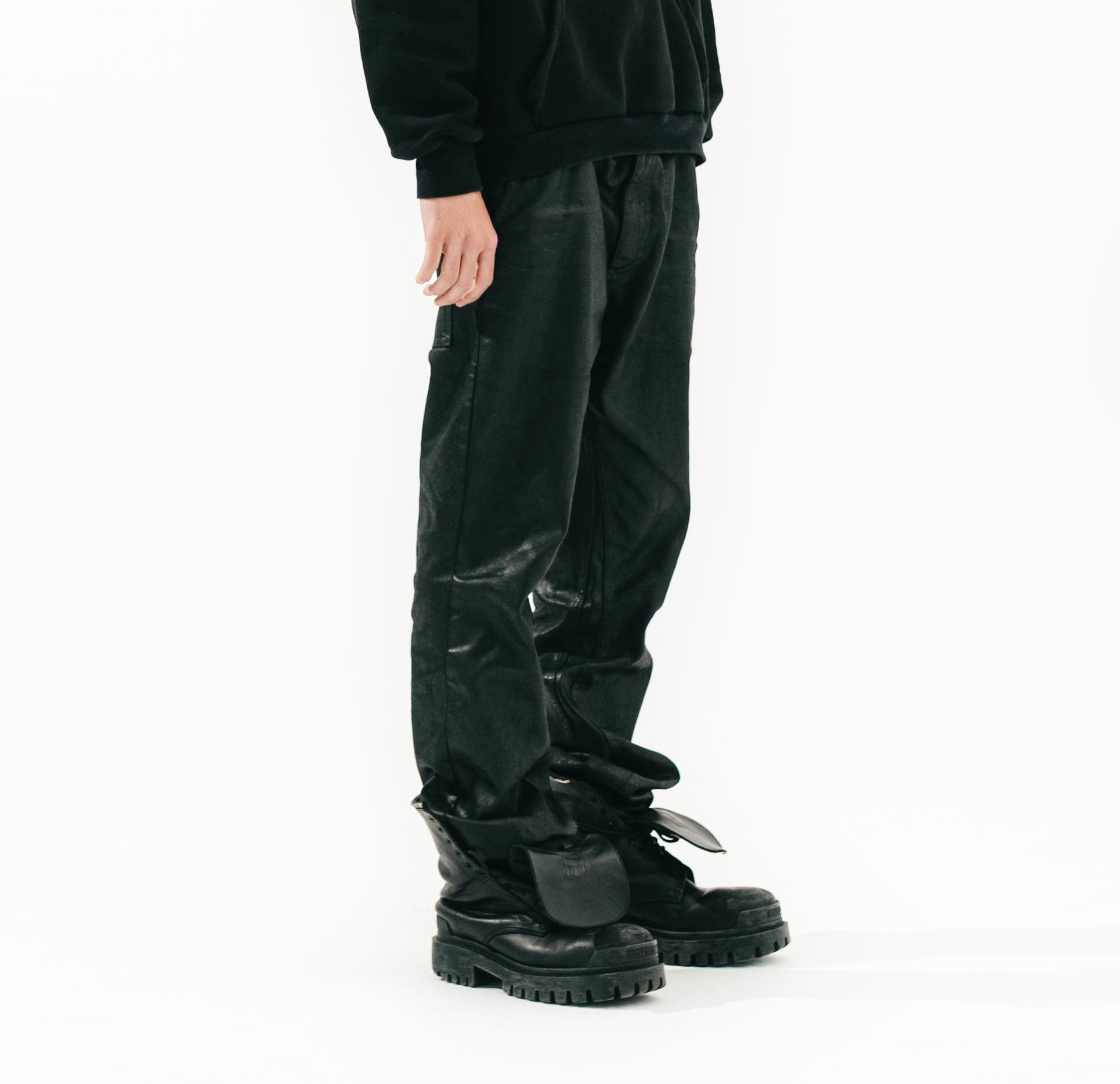 FLARED, WAXED DENIM